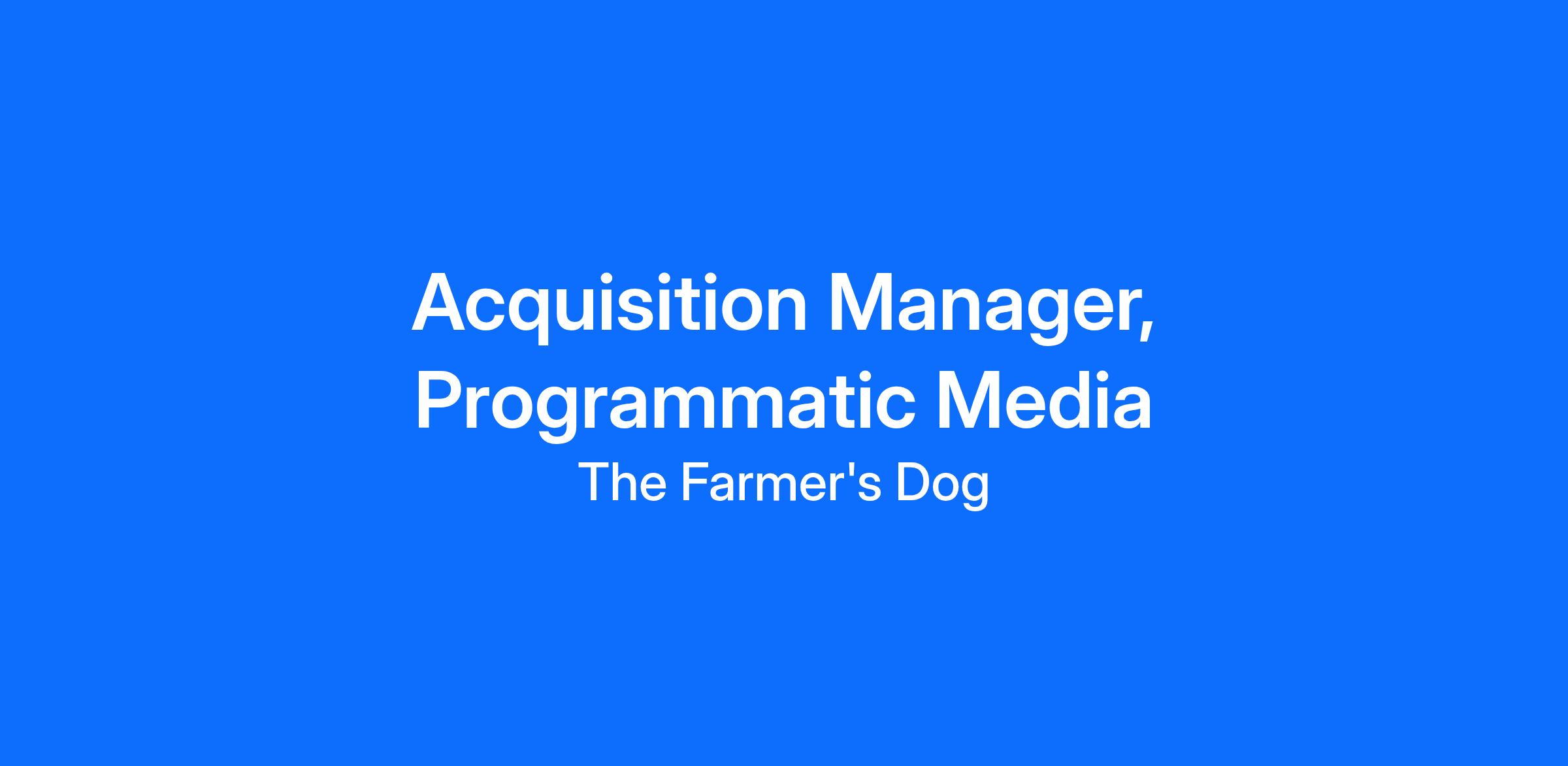 The Acquisition Manager, Programmatic Media will be responsible for supporting the Head of Media in owning and scaling TFD’s Programmatic video campaigns, with a specific focus on CTV. This person will be responsible for the strategy and working with our media partners to execute. A successful Acquisition Manager, Programmatic Media will have strong analytical and data-based decision making skills along with a customer-centric approach to everything they do. You’ll collaborate with teams across the business (especially broader Acquisition team, Brand, Creative, and Data Strategy & Insights) to strategize innovative ways to scale and test within our existing portfolio, while also vetting, researching, and implementing new opportunities.