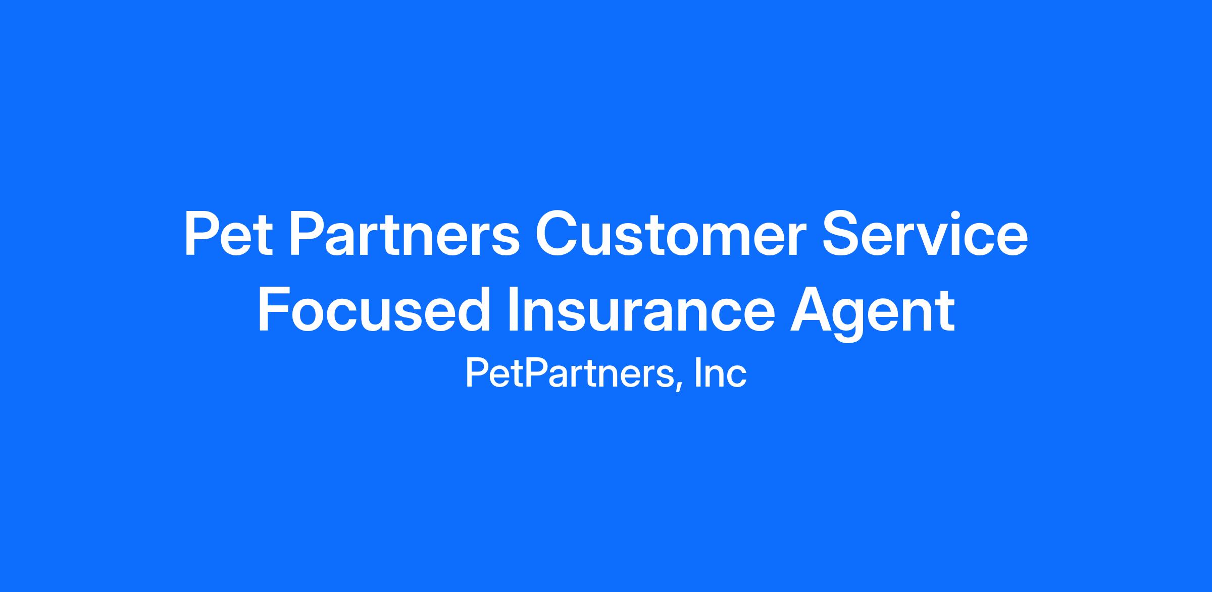 Pet Partners is seeking an Insurance Agent who will report to the Supervisor, Customer Service. Insurance Agents are responsible for assisting customers by providing information about products and/or services, answering questions, and resolving problems and issues.
